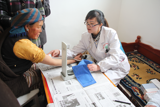 阜康醫(yī)院陳醫(yī)生 認(rèn)真的給每位到場患者測量血壓