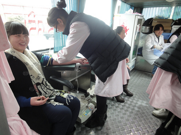 2014年3月21日,記者在采訪中獲悉,近期,我區各大醫院對O型和B型血的需求量較大,但是目前自治區血液中心的庫存量非常少,為了滿足醫院的血液需求,21日,自治區血液中心的采血車開進了西藏阜康婦產兒童醫院采集血液,來自西藏阜康醫藥集團的下屬各醫院、藥房的工作人員紛紛獻血,緩解用血緊張。