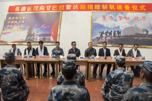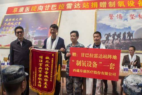 2016年5月11日上午,王斌董事長在捐贈儀式上講到:“阜康醫(yī)院自建院以來,始終秉承‘用我們的知識和良知為人類健康服務(wù)’的辦院宗旨,堅持發(fā)展不忘百姓、不忘社會。這次我們向甘巴拉雷達(dá)站的子弟兵們捐贈這套制氧設(shè)備,希望能夠為大家創(chuàng)造更好的工作、生活環(huán)境,希望能為駐守祖國邊疆的子弟兵們貢獻(xiàn)一份力量,在此,我謹(jǐn)代表阜康集團(tuán)全體員工向駐守在甘巴拉雷達(dá)站的人民解放軍全體指戰(zhàn)員表示最真摯的敬意。”