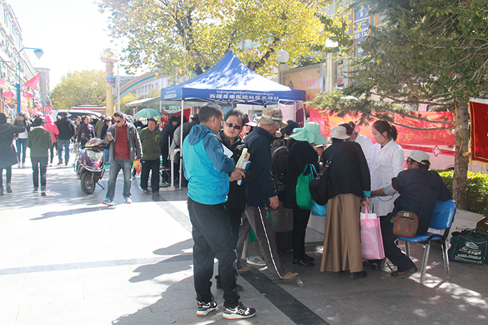 10月17日上午, 2016年“扶貧日”大型義診活動在拉薩市宇拓路隆重舉行。按照區衛計委通知,西藏阜康醫院抽調4名專家組成“精準扶貧,健康扶貧小分隊”在拉薩市宇拓路設點開展以送醫送藥、送檢查、免費義診、健康指導和咨詢服務等為一體的大型義診服務活動。