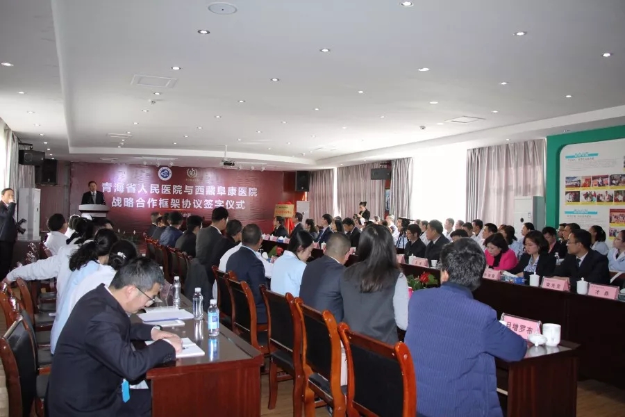 5月8日上午,西藏阜康醫院和青海省人民醫院簽署戰略合作框架協議共建高原健康研究中心,簽字儀式在西藏阜康醫院婦產兒童分院4樓會議室進行。西藏自治區政協副主席、區工商聯主席阿沛·晉源,區工商聯副主席巴桑多吉,拉薩市政協副主席亞古,青海省人民醫院黨委書記、院長吳世政,西藏阜康醫院黨委書記、董事長王斌等各級領導出席簽字儀式。