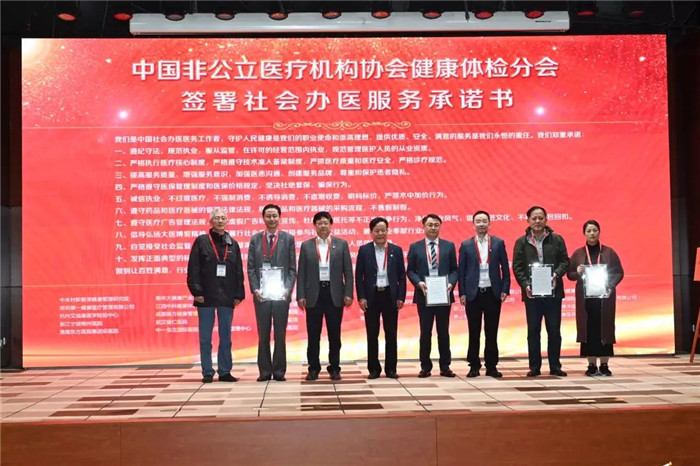 大會與當(dāng)選的常委單位現(xiàn)場簽署了行業(yè)宣言及社會辦醫(yī)服務(wù)承諾書,并為分會常委及委員頒發(fā)了聘書。