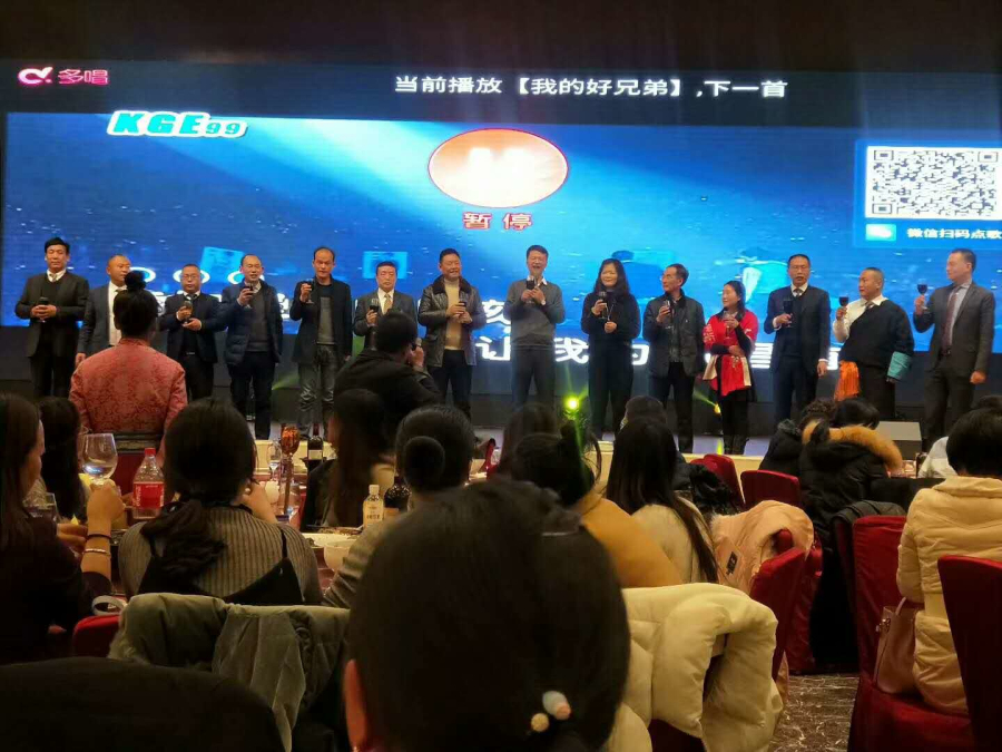 抽獎環節結束后,大家紛紛落座,晚宴正式開始,席間歡聲笑語、觥籌交錯,空氣中彌漫著幸福的味道。董事長王斌率阜康院領導集體登臺共同祝福阜康明天更輝煌,祝福各位同仁工作順利、扎西德勒!董事長王斌還為大家深情演唱了歌曲《父親》、《母親》,濃濃的思念打動了在場的每一位,總經理陳彬也上臺高歌助興,阜康的小朋友們也不甘示弱,主動請纓為大家獻歌一首。