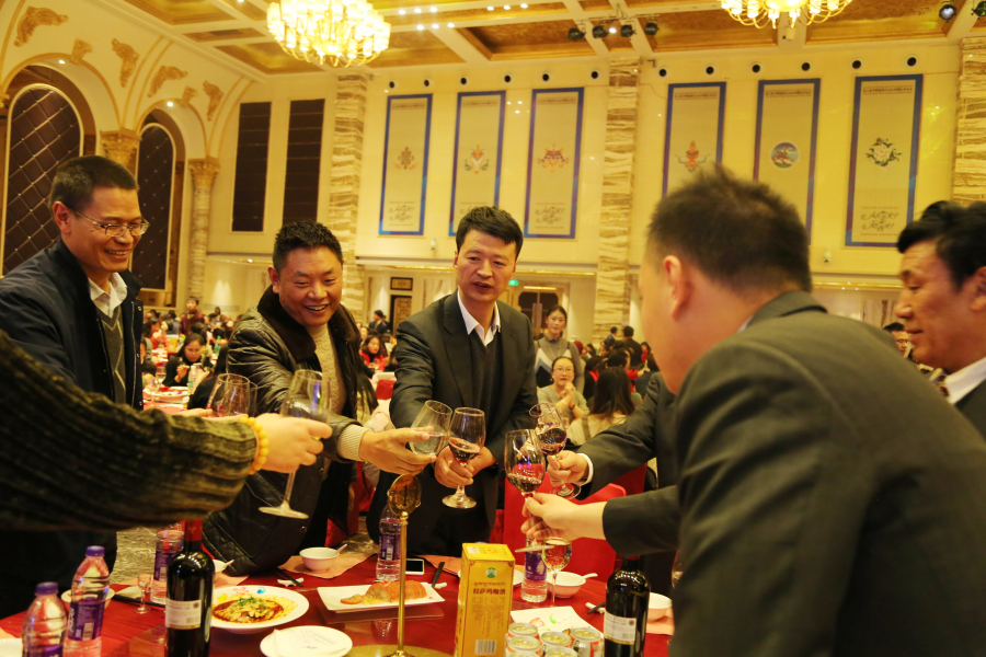晚宴尾聲,董事長王斌邀請所有院級領導上臺共同舉杯說:“希望大家在新的一年繼續沿著創新的道路團結一致、規范管理、用心服務,開源節流地做好自己本職和醫院的工作。我相信,在各位阜康同仁的共同努力下,2018年我們一定會保質、保量完成工作計劃。為保障西藏自治區廣大人民群眾的身體健康做出新的更大的貢獻,促進醫院健康、持續、穩步地向前發展,更上一層樓,再鑄新輝煌! ”