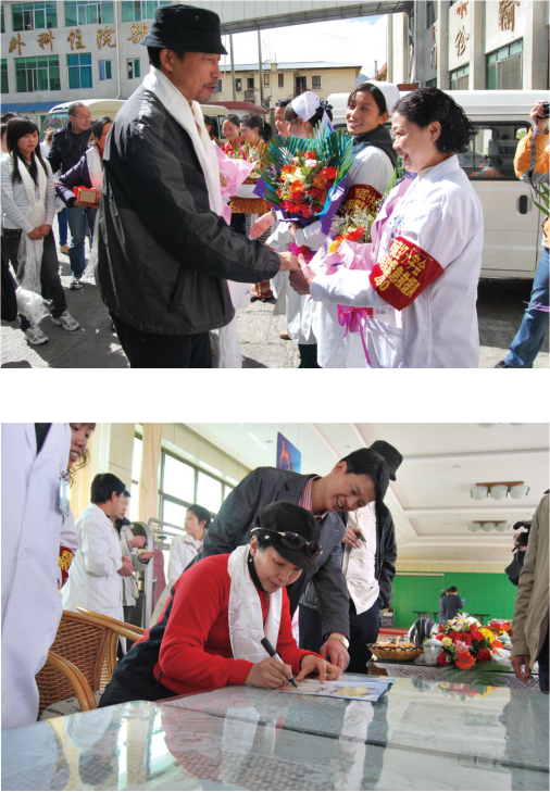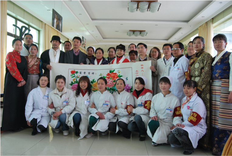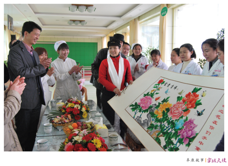此次的西藏之行,田啟蘭專門代表綿竹人民準備了一副《富貴吉祥》手工刺繡圖,表達災區群眾的感激之情。這幅刺繡是田啟蘭和幾名繡女不分晝夜趕制出的。對于田啟蘭來說,這不僅是一次感恩之旅,更是去探望自己“家人”的溫馨之旅。 而孫海英呂麗萍夫婦了解到,阜康醫院醫療救援隊醫療一直在免費收治有困難的患者。在探訪時,有一位70多歲的老人就正在接受治療,所有的費用都是該公司董事長一個人承擔。得知這個情況后, 孫海英夫婦當即掏出自己隨身攜帶的全部3000多元現金捐獻出來。在了解索珍有身孕在身,孫海英夫婦和田啟蘭又一起買了禮物去看望這位白衣天使。