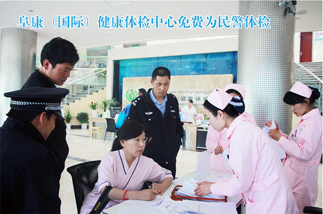在阜康(國際)健康體檢中心,前來參加體檢的民鳘換上了體檢服,在護士的引導下每位民警有序地進行體檢,體檢項目包括:血脂、血糖、血常規、尿常規、血尿酸、兩對半、肝功、腎功、心電圖、DR胸片、腹部彩超等。