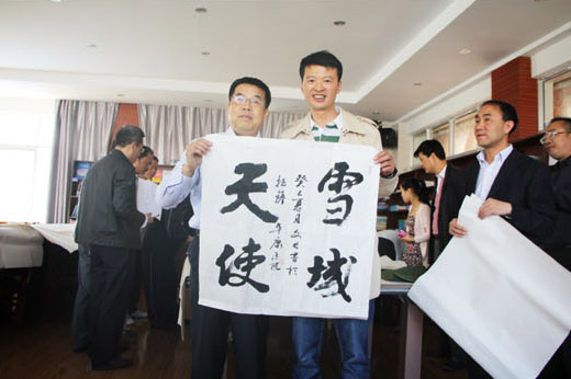 董昭禮主席對此非常高興地說:“感謝在西藏工作的安徽人士的熱情款待,也感謝阜康集團(tuán)為我們提供書畫交流的場所,更感謝王斌董事長的細(xì)心照顧。扎西德勒!