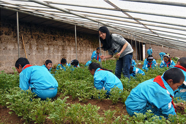 圖:白覺措帶領學生們在溫棚勞動