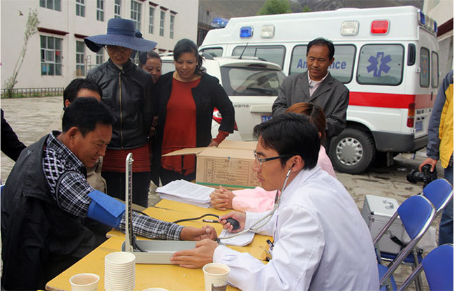 2013年6月25日早上七點,西藏阜康國際體檢中心、阜康心腦血管分院的醫護人員與《拉薩晚報》的記者共同深入“最美鄉村教師”侯選人所在的學校,為常年工作在鄉村教育第一線上的老師們免費體檢,為他們送去健康。