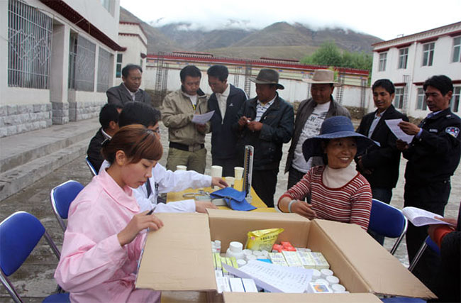 通過為尼木縣鄉村小學老師們的體檢,董發善醫生說:“大部分老師都患有血管神經性頭疼和不同程度的胃病和膽囊疾病。這是由于在鄉村學校中,老師們工作繁忙,經常忘記吃飯或者到了吃飯的時候就湊合吃幾片風干肉,喝幾杯酥油茶。這是造成鄉村老師腸胃和膽囊疾病的主要原因。此外,由于老師們經常站著講課,腰椎疾病的患病率比其他行業的要高。”在體檢的同時,醫護人員還向老師們發放了常見疾病預防知識的宣傳材料。