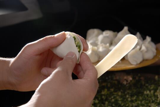 看著爺爺搟面皮會(huì)覺得很過癮,這活兒我和弟弟卻干不了。于是,爺爺會(huì)找出一個(gè)杯蓋,將面皮搟出一大張,我跟弟弟就拿著杯蓋一個(gè)一個(gè)的按,按好的面皮變成了一張一張的圓。爺爺包的餃子很好看,也很飽滿,照著爺爺教我們的方法包出來的餃子,卻是形狀各異的。盡管這樣,我們還是會(huì)很開心。