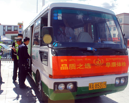 2014年6月1日上午,西藏阜康(國際)健康體檢中心派出免費體檢車,為拉薩市公安局交警隊東西南北郊的執勤民警們及女子中隊做了免費體檢。