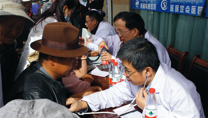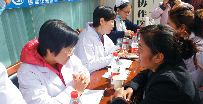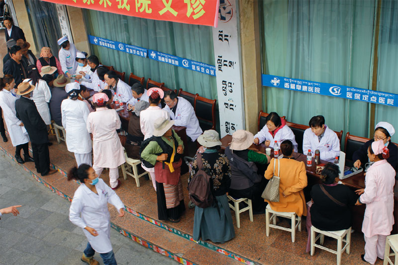 2014年9月29日,8位來自內地各大醫院的專家在娘熱路阜康醫院門口為市民義診。阜康醫院業務副院長張治說:“原本有14位專家來參加義診,可是因為幾位有高原反應,最后只有這8位老師來到現場。”