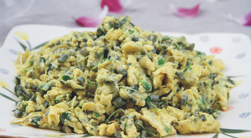 每年春季谷雨前后,香椿樹的嫩芽冒出苔了。幾乎每家每戶都計劃著要吃一頓香椿炒雞蛋。會爬樹的,直接爬上枝頭去摘取最嫩的那一簇;菜市上也偶爾會有人提著籃子叫賣,小小的一束,整整齊齊地擺成一排,邊緣緋紅的葉子隱隱散發著香氣。香椿炒蛋,曾經是最好的下酒菜,用水焯過的椿芽切得細細的,拌著蛋漿,在油鍋里炒熟,什么調料都不用,只下點鹽,那股獨特的味道就足以讓人齒頰留香。