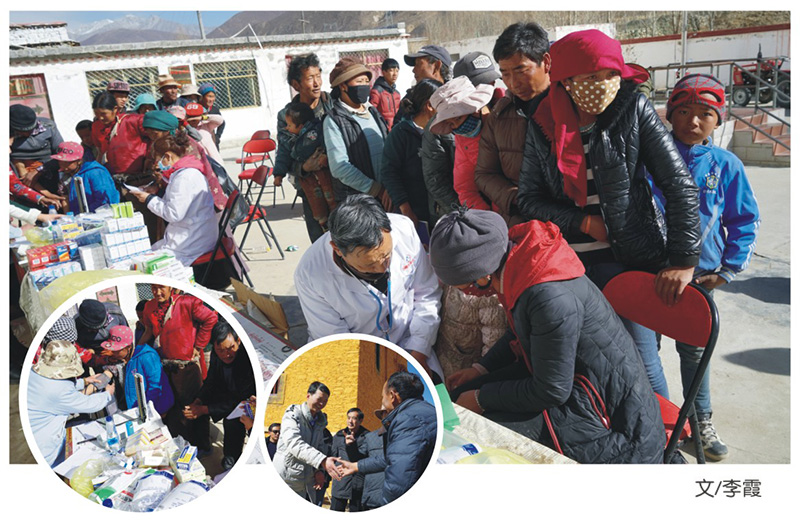 此次調研慰問,區黨委統戰部為駐村、駐寺干部和困難群眾送上慰問品、慰問金,在關心群眾生活的同時關注大家的身體健康狀況。區黨委統戰部還聯系到了阜康集團,為當地村民開展送醫送藥愛心義診活動。據阜康工作人員介紹,此次在公保扎西常委的帶領下,阜康共安排23位醫務工作者組成醫療免費義診隊,由王斌董事長親自帶隊。為了服務好更多的村民,公司特意從醫院挑選了嘎布院長等四位資深專家,同時配上設備先進的健康移動體檢車及醫療應急發電車。本次義診共為桑日縣巴朗村、扎巴村、奴卡村、及恰嘎曲德寺、卡瑪當寺等一千多村民及僧人提供免費醫療服務,為百余人提供免費體檢服務,其中腹部彩超檢查90人、前列腺彩超檢查14人、子宮附件檢查50人、放射檢查38人、心電圖檢查34人、采血化驗9人、尿常規化驗3人;發放心腦血管類、消化系統類、抗病毒類、解熱鎮痛類、抗風濕類等常用藥品逾五萬余元。阜康醫療隊通過義診總結出高血壓、風濕病、感冒、小兒感冒、慢性胃腸炎、膽囊炎等為當地村民多發病常見病。公保扎西常委一行在看望阜康醫療小分隊醫護人員時說“老百姓最喜歡的就是你們醫生。”