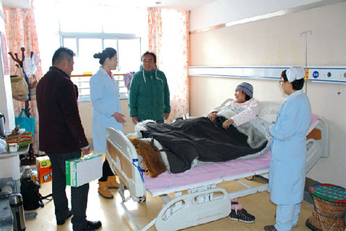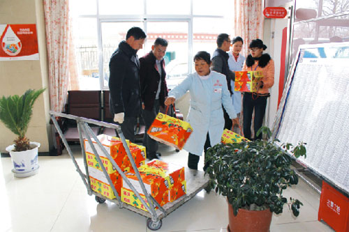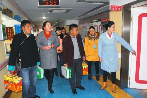 2015年2月19號,西藏阜康醫院、阜康醫院婦產兒童分院、阜康醫院心腦血管分院及阜康(國際)健康體檢中心在院領導的帶領下,去慰問不能出院和家人團聚的患者。醫院為所有住院患者送上了一份新鮮的水果禮盒及一箱純牛奶。