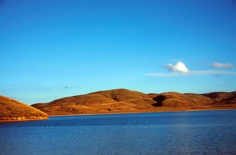 出了宜賓風景就大不一樣,時而沿著高山峽谷在走,時而又攀升在碧綠的盤山公路。行至昭通,另一片天了,天空蔚藍蔚藍,云朵開始無遮無攔,大朵大朵的掛在頭頂,而空氣也開始變得稀薄。眼前是大片大片黃褐色的山巒,樹木卻并不多,高速公路狀況極差,路兩旁的民居以平房居多,偶見一些小孩兒,三三兩兩。