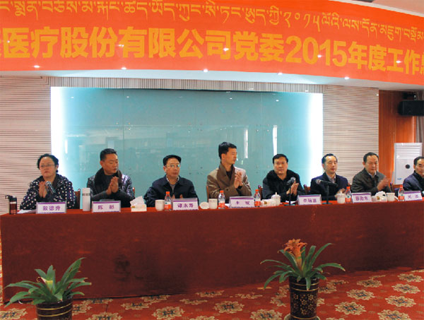 儀式由黨委專職副書記敖德秀同志主持,由區工商聯黨組成員、副主席、區非公黨工委副書記廖貽東同志宣讀《中共西藏自治區非公黨委關于成立中共西藏阜康醫療股份有限公司委員會的決定》;西藏阜康醫療股份有限公司黨委書記王斌同志發表重要講話,伴隨熱烈的掌聲,李瑞富同志及王斌同志共同為中共西藏阜康醫療股份有限公司委員會揭牌。儀式結束后,自治區非公黨工委各位領導一行參加了我公司黨委2015年終總結表彰大會。