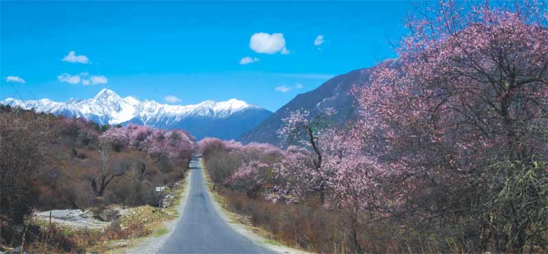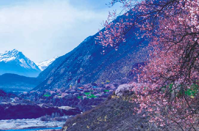 “你就那樣開著,是一首詞,高原雪山之上有你美麗的韻腳,帕隆藏布江邊有你往事的詞牌。我不問,你也不用答。余下的時光,你在半卷書的舊事里,在一闕詞的高原里,在雪山下的雨聲里,在青稞月影里,被我提筆寫進(jìn),我一個人的春天里。想像著,在一首詞里,一株桃樹下,書里書外,你是三月桃花,我是人間四月天。”波密的桃花就那樣盛開著,千年不變,與世滄桑。