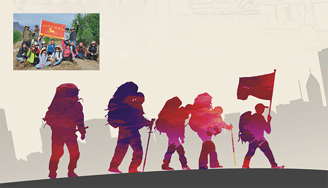 說起當初怎么想到發起這個徒步組織,阿杜一臉驕傲。我喜歡運動,和幾位志同道合者一商量,周末徒步吧。后來,加入的人越來越多,就建個徒步群,網上報名或打電話都行。活動一般是一天,中午伙食怎么解決?開始是自帶水果、點心,誰吃誰的,好像少些團隊意識。人多了,想起伙食AA制,我們背著鍋上山,隊友帶什么的都有,水果、糕點,葷的、素的,熟的、生的,干牛糞一燒,煮出一鍋大雜燴,又成了高原野炊。其實,只要愿意參加,不在乎你帶不帶吃的,因為我們有飯同吃。如今人人都能吃得飽而豐富,又不提倡多帶,盡量做到吃得干干凈凈,既輕松又節約還環保。