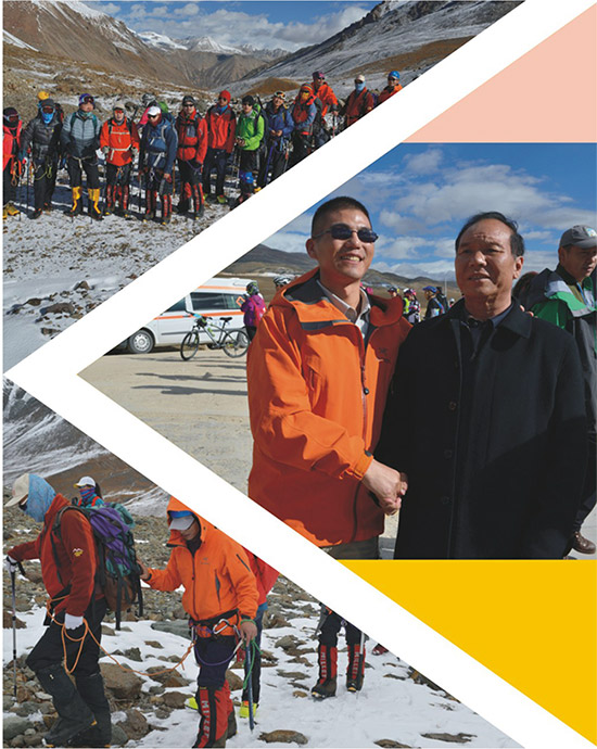 凌晨四點,全隊出發(fā),行走約兩個小時到達沖頂峰,攀爬約60—70度的登頂區(qū),最后的沖頂攀爬約90度的沖刺點,總共用時不到5個小時。腳下的積雪淹沒膝蓋,這樣的坡度,這樣稀薄的空氣,每走一步都是成功。洛堆峰攀登教練次仁旦達說,攀登雪山收獲的是三種快感:一是意志力的拼搏,越到最后爬不動時,靠的就是一種不放棄的意念,在這一過程中就錘煉了堅忍不拔的意志力;二是重新定義喜悅和滿足,有人享受到達頂峰的喜悅,也有人舍得放棄并滿足于經(jīng)歷,所以登山從來不以是否登頂衡量成敗;三是真正體驗和感悟人生。人生就像登山,遙看目標似乎高不可攀,其實每向前一步,我們就距離目標更進一步。這三種感悟何嘗不是張洪滿滿的收獲。