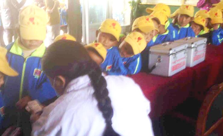 5月31日,受拉薩晚報社駐墨竹工卡縣甲瑪鄉(xiāng)赤康村工作隊的邀請,由才仁、卓瑪次仁帶領(lǐng)的西藏阜康醫(yī)院社區(qū)義診隊來到甲瑪鄉(xiāng)中心小學(xué),為小朋友送來“健康大禮包”。本次活動共計285名學(xué)生接受體檢,帶去20多種藥品價值約25000元。一聲溫馨的提醒,一盒充滿愛意的藥品,都讓孩子們感受著全社會的關(guān)愛。